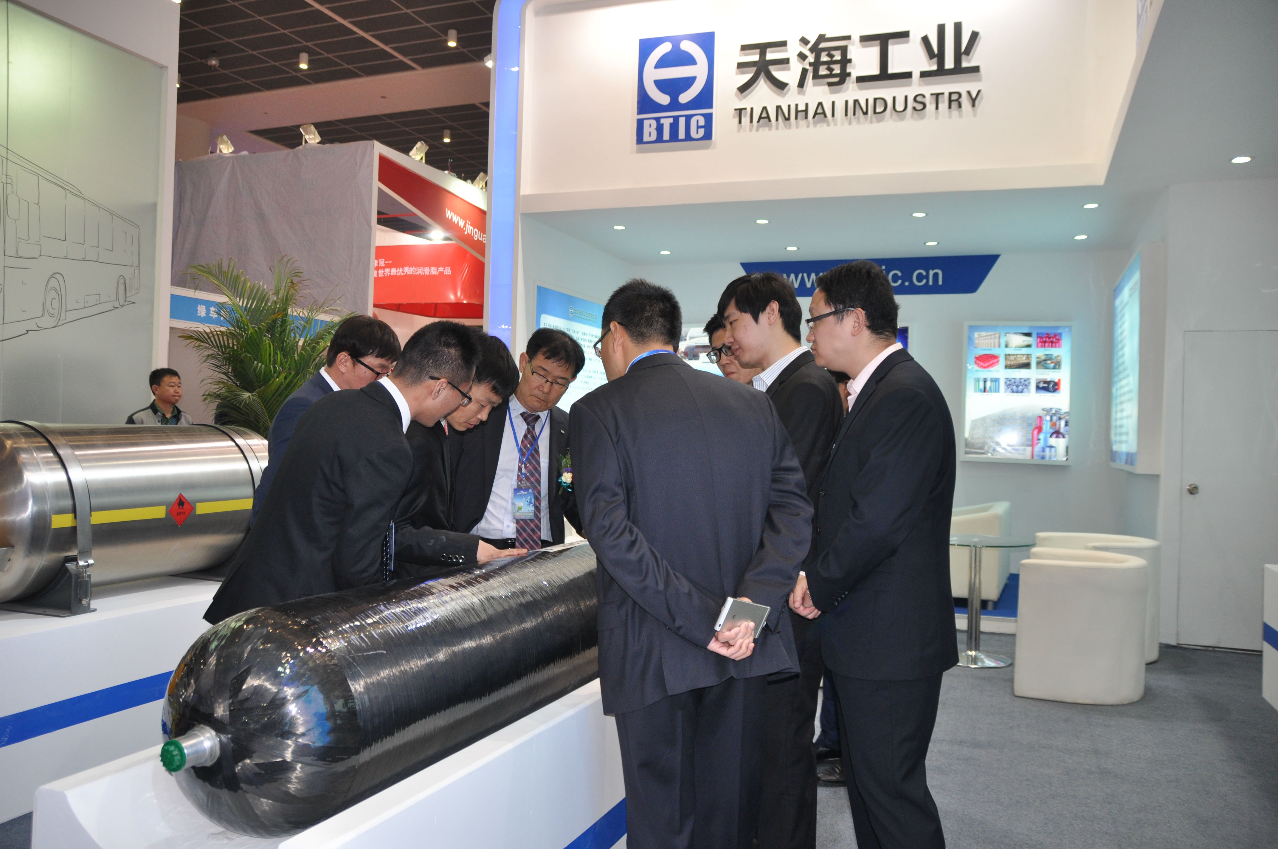 天海工業(yè)秉承高效、環(huán)保、節(jié)能的理念,致力于推動清潔能源汽車燃料系統(tǒng)的發(fā)展,提供天然氣儲運(yùn)領(lǐng)域全套解決方案。此次展會,不僅展出了公司全新研制的車用鋁內(nèi)膽碳纖維全纏繞復(fù)合氣瓶(CNG-3型瓶)、還有具有國內(nèi)先進(jìn)技術(shù)的車用SI型LNG氣瓶、更有可為客戶提供全面的LNG氣瓶定檢站/維修服務(wù)站解決方案,吸引了天津公交、濟(jì)南公交、中通客車、青年客車等眾多客戶及廠商前來溝通洽談。天海工業(yè)豐富的產(chǎn)品種類和優(yōu)質(zhì)的服務(wù)得到客戶的廣泛認(rèn)可,體現(xiàn)了天海工業(yè)在天然氣產(chǎn)業(yè)鏈中豐富的裝備制造能力以及強(qiáng)大的品牌影響力。